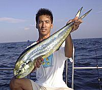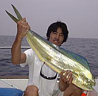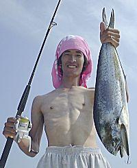 南風が多少強いもののせっかくの土曜日なので出撃、朝一番に沖のパヤオへ向かうが、沖に出るにつれて波が高くなってきた。パヤオに1番乗りしてそっとアプローチすると、回遊しているシイラが沢山いる。シイラは完璧に戻って来ていた!。1投目から早速メンバーにHIT、50cm程度のペンペンだがかなり高活性でバンバンあたる。攻める事5分、バレラーさんに良い型がHIT、一瞬にして50mほどラインを出されジャンプ。これはでかい!10分ほどの格闘の末船べりまで上がって来たのは確実にメーターオーバーのメスシイラ。私はデジカメを用意してタモ入れの瞬間を見守る。1回目はうまく入らなかった。もう一度魚を回し2回目、タモ網まで30cmという所でなぜかメインラインがラインブレイク。メーターオーバー+トビペンは青い海へと消えて行ってしまった。さすがバレラーのハンドルネームは伊達じゃない。普通あそこでラインブレイクしないっしょ。まいりました(笑)この格闘の後、すぐに遊漁船が攻めに来たが、他のシイラは一気に10mラインまで沈みお手上げ状態。何隻もの遊漁船が来たが、5分ほどで諦めて潮目探しに散っていった。少し待ってみたが沈んだシイラが浮いてこないので我々も潮目探しの旅に出発。あまりにも潮色が良くないので沖を目指したが南西の風10m/s+波高2mには勝てず途中で引き返し今日のシイラは諦めた。、帰る途中に見つけた鳥山にて大サバ(45cm)を一人10本ほど釣り。3本だけ確保して、マリーナで刺身にし、宴会をして解散。良く考えてみると今日シイラを釣っていないのは私だけ。9/300匹から増えていない。西がらみの風だったので相模湾でも西の方はそこそこの釣果だったようです。![]() |