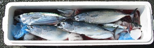 そのまんまじゃん... いやいや、ウロコを見てもらいたい、ウロコの付き方が違うのよ、覚えておくと便利ですぞ。 ちなみに上の魚の形でお腹に黒い線が3〜4本入っていれば「本ガツオ」、入っていなければ平ソーダ。 平ソーダはかなり美味しいので捨てないでキープじゃぞ。間違っても本ガツオ釣れたょ〜なんて言うと 恥じかくので気をつけましょう。 チラホラだか「本ガツオ」も見えたので今年はカツオ楽しみですね。 ロッド:ダイコー サザンクロス6ft TR−C58 リール:エンブレムX 3500 バイオマスター4000 ライン:PE2号 リーダー:40lb HITルアー:サミー115(4番フック)&サミー115(2番フック)、レッドペッパーマグナム、ギャロップ30g&40g |