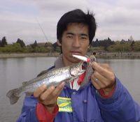久しぶりに東山湖でトラウトゲーム、GW中にもかかわらずあまり混んでいなかった。朝はトラウトミノーなどで遊んでいたのだがあまり反応が良く無い。変わったルアーを投げようとシーバサーなら必ず持っているレッドヘッド(アイルマグネット)にチェンジ数投目でHIT!皆が使っていないカラーはやっぱり釣れますね(笑)その後バイトが遠のいたので2.5gのスプーンにチェンジ、そこそこ飽きない程度に釣れるが爆釣にならない。そこで作戦変更、今日持ってきたトップウォーターを極秘チューニングしたのが大正解。1キャスト1HIT、10キャスト10GET、30キャスト30GETと数を伸ばし最後にビクに入れていた魚を数えるとあと少しで3桁に到達するのが分かったので少し粘って念願の3桁を達成。活きが良いものだけはリリース(本当はリリース禁止です)死んでしまったのと死にそうな魚をクーラに入れたら69匹。近所に配ったり、実家に持っていったり釣りより魚を配るほうが疲れました。実釣時間8:00〜12:00の4時間でこれだけ釣ったのは初めて。![]() ![]() HITルアー ピボット改 |