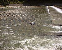 暇なので新潟県の渓流に行ってきました。川の名前は良く分からん、とにかく川です。着いた当日から集中豪雨の為、大増水。運がないの〜。家からここまで420km、3時間も(平均時速は気にしないように!)かけて来たのに「意味ないじゃん」、まあこんな事もあるさと、部屋でゆっくりして減水を待つ。次の日は雨もやみ天気!でもまだ増水している。部屋でゴロゴロ。まあ明日になれば何とかなるっしょ。でも物凄い夕立でまた増水。ふー明日はもう帰る日だよ。やっと何とか遊べる程度までは減水、でも濁ってる。地元のナオミさんに鮎の友釣りを教えてもらう。やってみるとこりゃはまるよ!ルアー以上に面白いかも、囮(おとり)の泳がせ方が結構難しい。ルアーと違って下手に泳がせると囮が弱っちゃうので気を使う。帰る予定を延ばし次の日は囮をコロガシで捕まえると言うのでやってみたら、バンバン釣れるからまたはまってしまって友釣りなんてやりませんでした(笑)私の大好きな夏の楽しみ、水中メガネ+モリで鮎もつついて遊べたし物凄く満足、あと1ヶ月経つと投網が解禁、今度は投網打ちに行くぜい!皆も一度、投網やってみそ、あれはなかなかうまく開かないから楽しいのよ!ツインパワー1個買うぐらいの値段で売ってるよ。 ナオミさんシンゴさんお世話になりました、ありがとうございます。 ![]() HIT道具 20cmくらいの元気な鮎+ナオミさんの長い竿 普通の釣り具屋で500円で売っているモリ(柄が長くてゴムでパシュってやるやつ) |